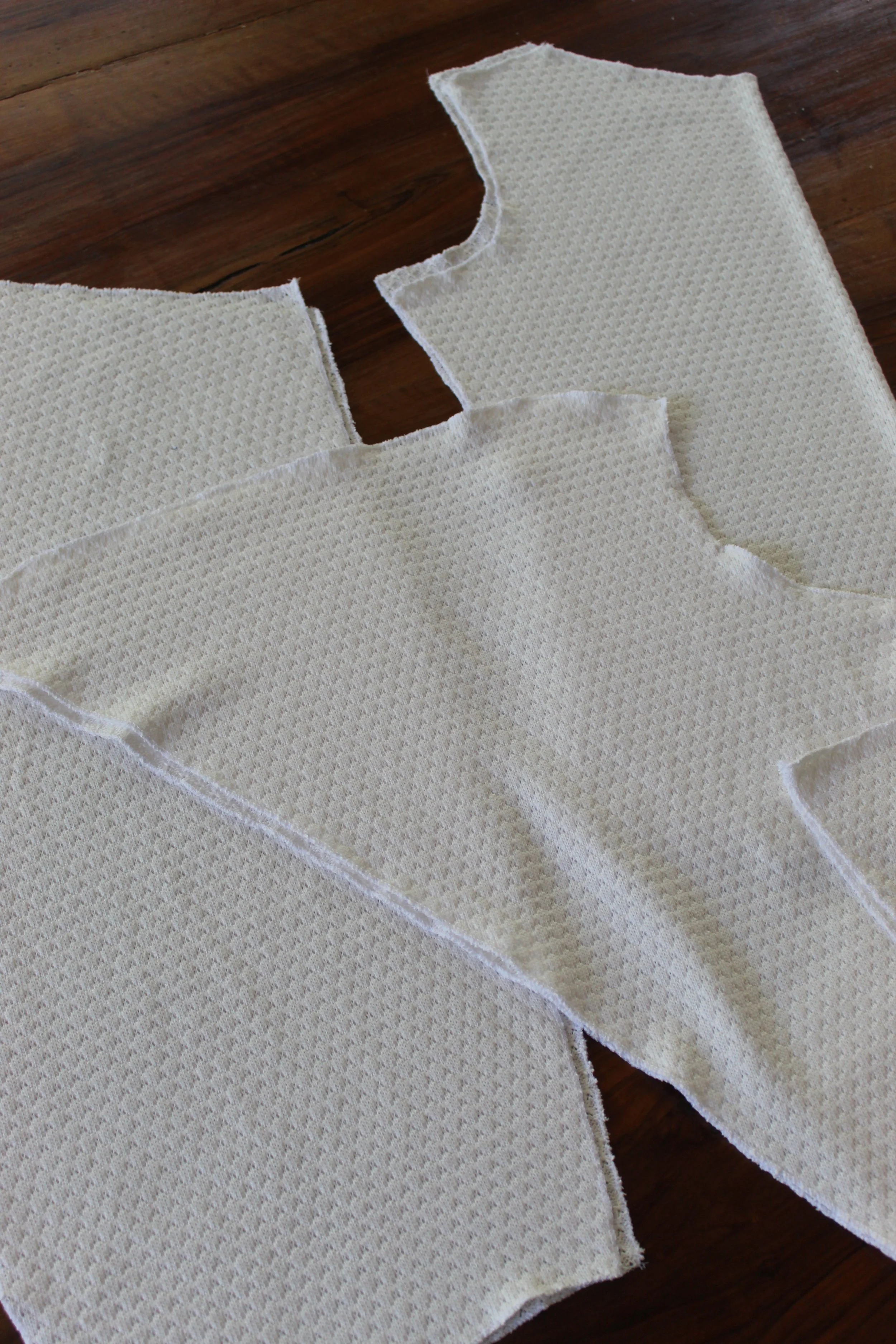 Certains côtés des pièces de tissu correspondent et sont cousus ensemble.